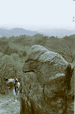 鬼叫山頂上部にある方位石の一角の獅子型岩。