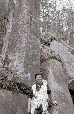 神武岩の前の著者と巨石を比べると大きさが分かる。