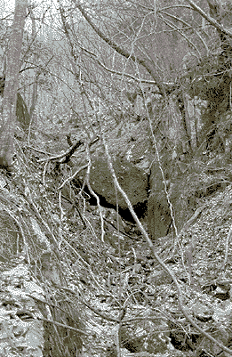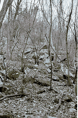 興味深い形をした岩。崩壊跡。人工か否かは確信が持てない。