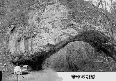 帝釈峡雄橋は葦嶽山の東北東約10kmのところにある不思議な天然橋だ。